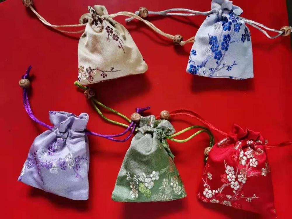 中医科根据此次疫情特点制定防疫香囊,香囊成分:金银花、藿香、佩兰、苍术、贯众、山柰、防风、草果、黄芪、白芷、艾叶、薄荷等20余味中药,将这些草药共研细末,绛囊盛之。