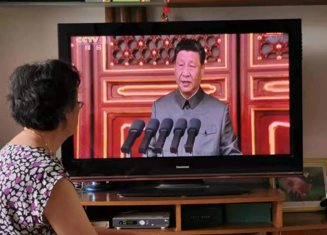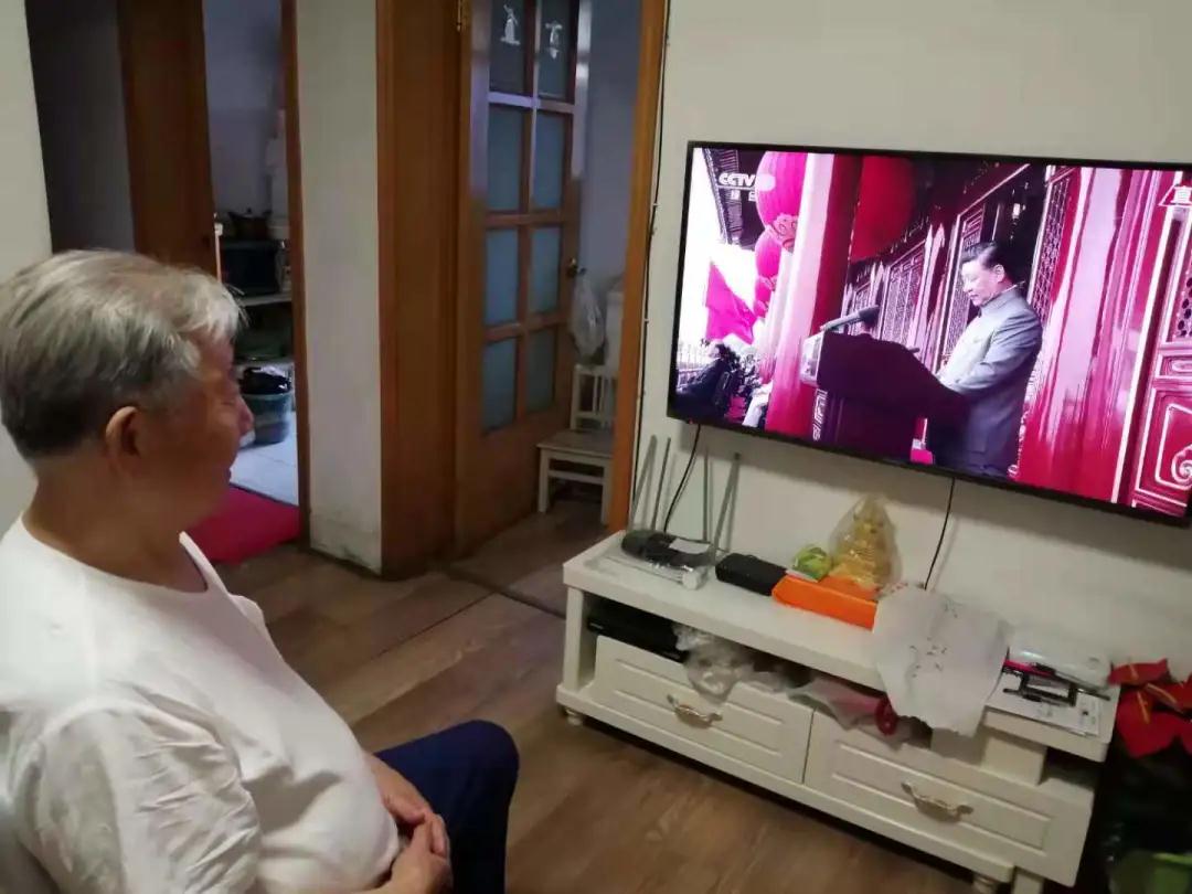 市一院离退休老党员在家认真观看庆祝中国共产党成立100周年大会