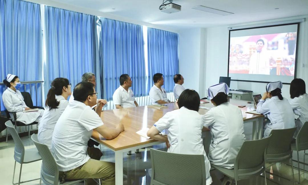 徐州市一院党委组织集中收看了本次大会的实况直播。党委书记杜钟祥,院长、党委副书记丁继存,党委副书记、纪委书记毕荣,党委委员、副院长甄宗礼、赵亮、金风、沈鹏,党委委员、工会主席秦勇等院党委班子成员来到基层党员中间,一起观看庆祝大会的现场直播,大家聚精会神,聆听总书记的指示,领会话语中的精神。市一院还组织离退休老党员们在家观看。