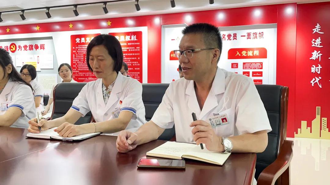 丁继存在交流发言中,回顾了中国共产党走过的“以史为鉴、开创未来”的百年辉煌历程。他将今天习近平总书记发表的“七一”重要讲话定位为一篇马克思主义的光辉著作和经典文献,呈现中国从站起来、富起来到强起来的崛起之姿和发展之势。他要求全院党员站在“两个一百年”奋斗目标交汇点,“十四五”开局之年,要牢记初心使命、坚定理想信念,践行党的宗旨,始终保持与人民群众的血肉联系,与人民群众想在一起、站在一起,风雨同舟、同甘共苦。“我们要结合党史学习教育和本职工作,把本阶段党史学习教育重点落在‘开新局’上,主动思考、直面困境、弥补短板,总支和支部把如何发挥党的作用作为思考方向,注重专科发展、学科引领、业务提升等中心工作,不负人民、不负时代、不负韶华。”