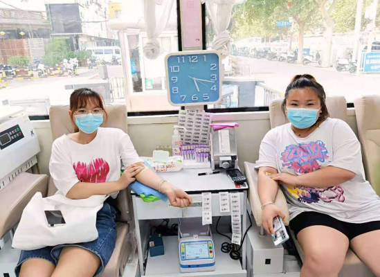 在现场工作人员的指导下,大家严格遵守防疫安全规定,测量体温、查验健康码。井然有序地填表、体检、奉献热血。在现场我们见到了两位认真填表的姑娘——尹婷婷和席雨晴。据悉,这两位姑娘是结伴前来的。席雨晴表示,在新冠肺炎期间,自己通过媒体的宣传和自己的主动了解,体会到了血液对于拯救生命的重要性。“作为当代青年人,自己有责任和义务参加无偿献血活动,为拯救生命贡献自己的一份力量”。尹婷婷姑娘说。一起来的小伙伴是第一次献血,看到扎针有点紧张。“咱们一起加油,冲鸭!”姑娘们互相鼓励,在彼此的鼓舞下勇敢地举起了自己的臂膀,当看到汩汩鲜血流入血袋,她们年轻稚嫩的脸庞上露出了自豪的笑容,充满爱意的举动感染了在场的每一个人。热血涓涓流出,带着心脏的搏动,带着点点爱心的温度,温暖了人心,延续了生命,谱写了生命的全新篇章。
