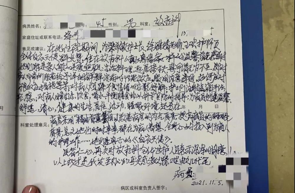 针对长期失眠的患者,六病区提供助睡眠的香薰机进行香薰,还收到患者的感谢信。